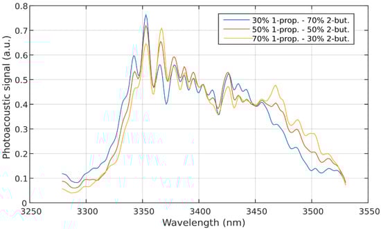 Photoacoustic spectra of 2-butanone/1-propanol mixtures.