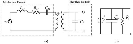 RM. The piezoelectric coupling is modelled as a transformer, and