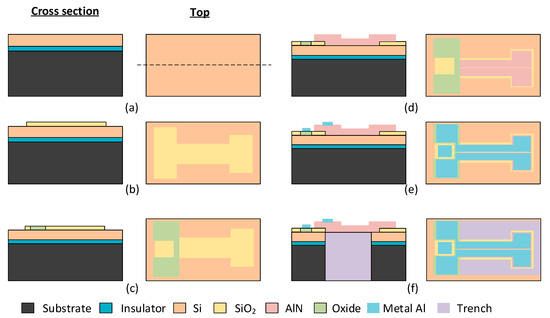 Figure 10c). A 0.5-µm-thick layer of piezoelectric aluminum nitride (AlN) is then deposited and patterned (
