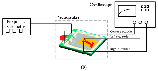 p-p, however a limitation of 10 V max was imposed by the function generator used (Keysight 3320A function generator (Keysight, Santa Rosa, CA, USA)). The three input voltage amplitudes used on the piezo speaker are 5, 7.5, and 10 V.