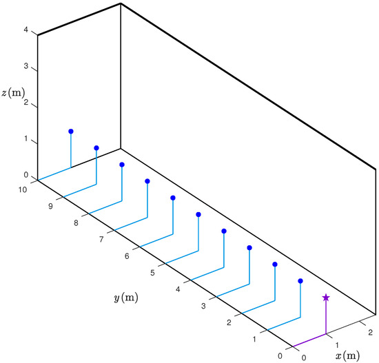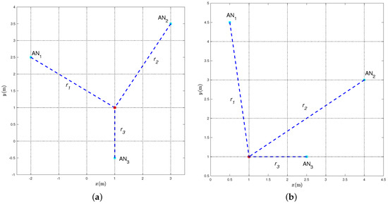 First, we consider the scenario shown in Figure 5a, where the coordinates of the ANs, expressed in meters, are