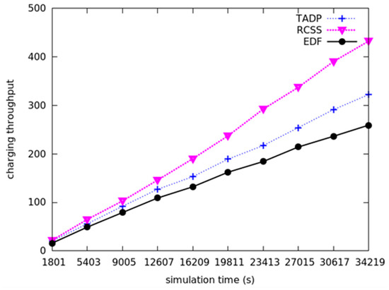 The comparison of charging throughput among RCSS, TADP and EDF.