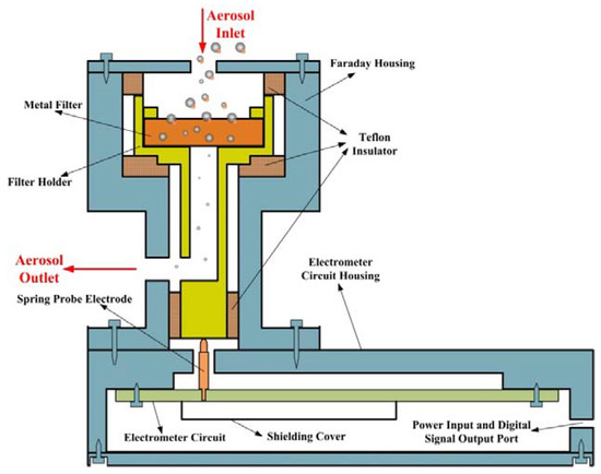 - Intra, P.; Tippayawong, N. Development and Evaluation of a Faraday Cup Electrometer for Measuring and Sampling Atmospheric Ions and Charged Aerosols. Part. Sci. Technol. 2015, 33, 257–263. [Google Scholar] [CrossRef]