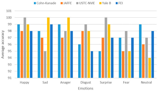 - Lyons, M.J.; Akamatsu, S.; Kamachi, M.; Gyoba, J.; Budynek, J. The Japanese Female Facial Expression (JAFFE) Database. In Proceedings of the Third International Conference on Automatic Face and Gesture Recognition, Nara, Japan, 14–16 April 1998; pp. 14–16. [Google Scholar]