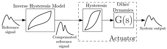 Hysteresis compensation involves selecting an adequate model of hysteresis, identification of the model parameters from the physical system and inversion of the model. By applying the inverse hysteresis model to the reference signal, a hysteresis compensated signal can be sent to the actuator, which should result in smaller error in the response. This effect is depicted in the diagram in Figure 4.