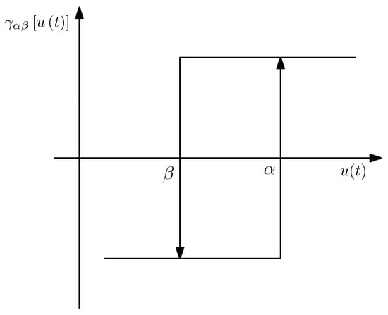 In which is the output of each hysteron, and , the Preisach density function, represents the weight of each hysteron. The values and correspond to the switching values of each relay as previously depicted in Figure 5.