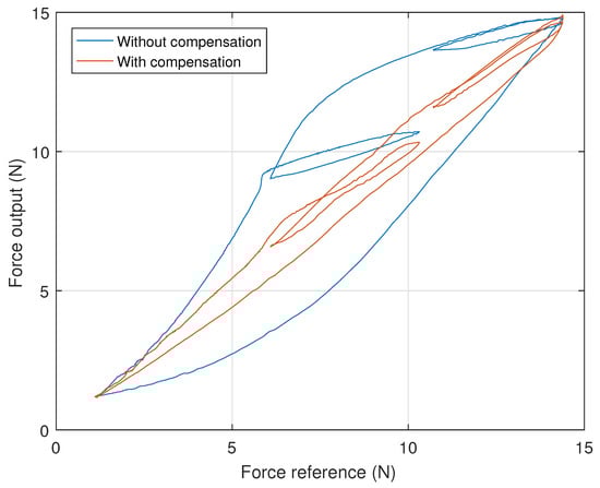 Furthermore, this decrease in error can be attributed to the performed hysteresis compensation, as the total system hysteresis is shown in Figure 10 to have been significantly reduced.