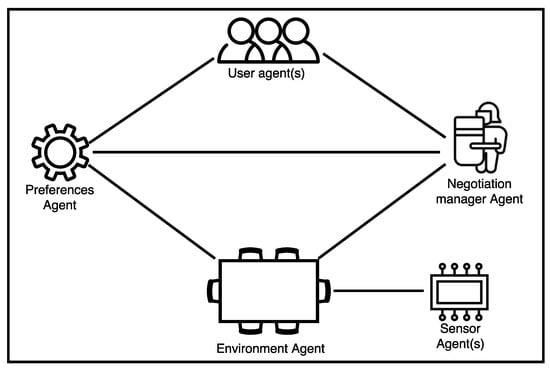 This section describes the proposed system, with a special focus on the negotiation part on the conditions to which the environment must conform and which is carried out between the agents representing the users of the environment, since the part of the system that allows the system to perform the actions that allow optimization as well as communication with the HVAC and lighting system, is based on a previously published work [44].