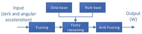 To fully use the information of jerk and angular acceleration, this paper uses a fuzzy logic-based judgment method to accurately determine the pedestrian movement status. Fuzzy logic is a type of conceptual judgment and reasoning mode of thinking that imitates the human brain. For a system with unknown or uncertain model, the fuzzy set and fuzzy rules are used for reasoning, and transition boundaries or qualitative knowledge experiences are expressed. Fuzzy logic can be used to implement fuzzy comprehensive judgments. The basic block diagram of fuzzy logic control is shown in Figure 4.