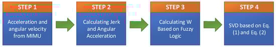 Finally, the fuzzy logic control method is used to obtain the adaptively adjusted window size of the ZVD based on the angular velocity and acceleration information of the pedestrian foot, which is measured by the MIMU as the data source. The basic implementation steps of the ZVD based on the adaptive detection interval is shown in Figure 6.