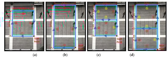 Pedestrian-positioning test route: (a) Route A; (b) Route B; (a) Route C; (b) Route D.