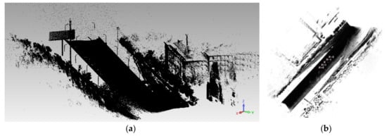 LiDAR points data. (a) Main view of LiDAR points. (b) Plane map of LiDAR points.