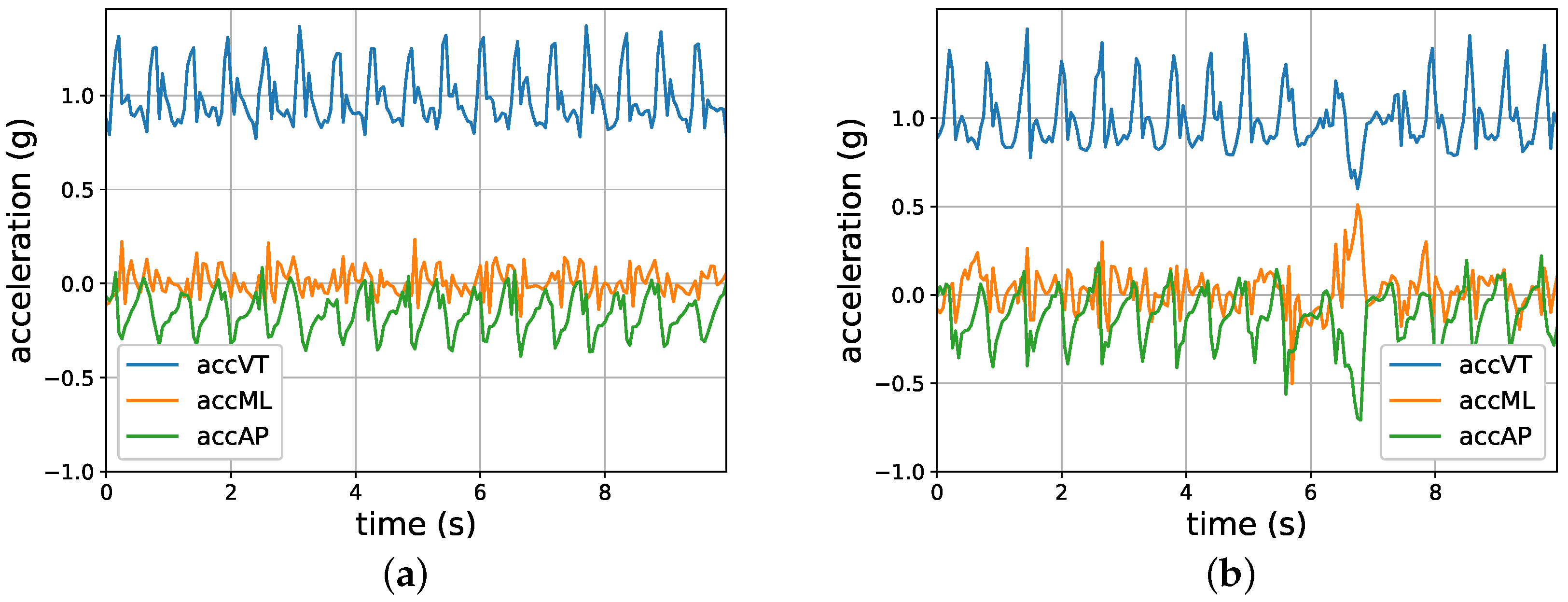 - Hu, B.; Dixon, P.; Jacobs, J.; Dennerlein, J.; Schiffman, J. Machine learning algorithms based on signals from a single wearable inertial sensor can detect surface-and age-related differences in walking. J. Biomech. 2018, 71, 37–42. [Google Scholar] [CrossRef] [PubMed]
