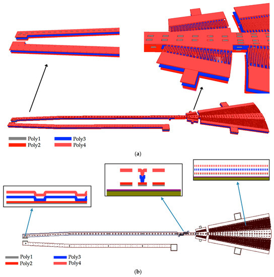 (a) 3D view and (b) layout of the microgripper based on the SUMMiT V surface-micromachining process.