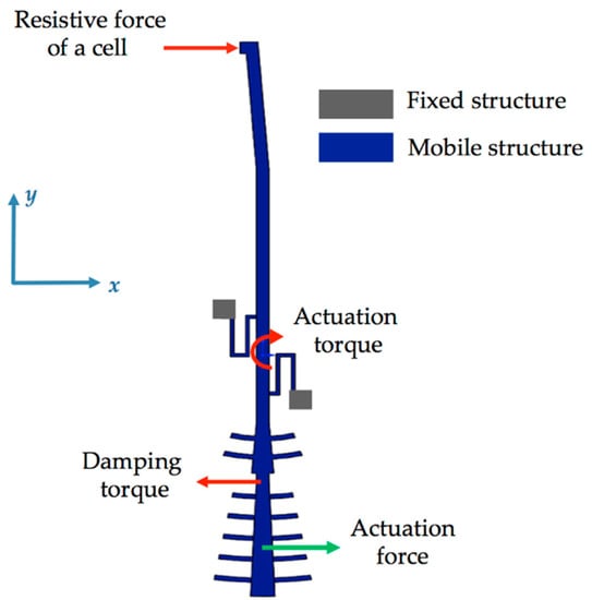 The actuation torque (τ) on the mobile arm of the microgripper can be determined by [46,47,48,49]: