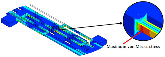 Maximum von Misses stress on the serpentine springs of the microgripper.