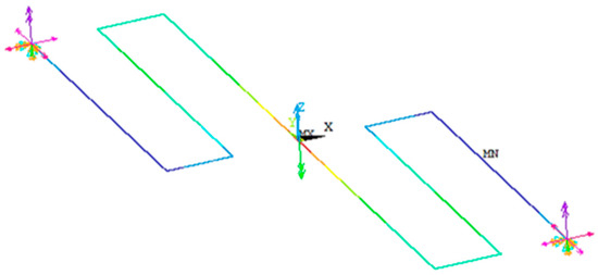 In addition, other FEM model of the serpentine springs is developed using beam188 elements, as shown in Figure 15. External points of the FEM model are considered clamped and the forces are applied on the connection point. Table 2 summarizes the stiffness results of the serpentine springs of the microgripper using the analytical and FEM models.