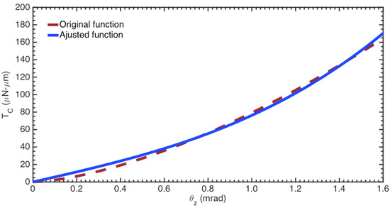 Figure 16 shows the plot Tc versus θz of benign prostate hyperplasia (BHP) cells. The values of θz are limited to 0.0016 rad due to rotation angle of the mobile arm when the cell is compressed by 20% of its radius. The results of the resistive torque of the cell have a nonlinear behavior, which can be adjusted using a third-degree polynomic function αax3 + αb by applying least square method. Table 5 reports the parameters of the approximated functions (Tc) for each cell type.