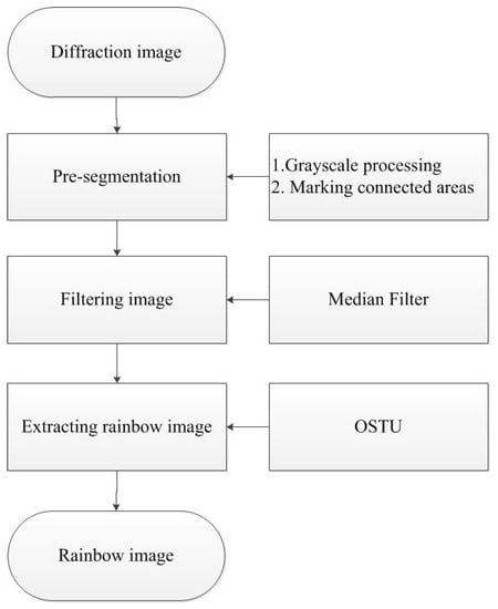 Digital images are generally affected by noise from the imaging instrument and the external environment during digitization and transmission. In this paper, we use the median filter for image denoising. The main idea of median filtering is to replace the value of a point in a digital image or digital sequence with the median of neighboring points. As a result, the surrounding pixel values are close to their real value and the isolated noise points are eliminated. The median filtering is especially useful for denoising which can efficiently preserve edges []. After image denoising, to retain the maximum information of color, we used the hue, saturation and value (HSV) color model, which is close to human visualization for preliminary processing the rainbow image.