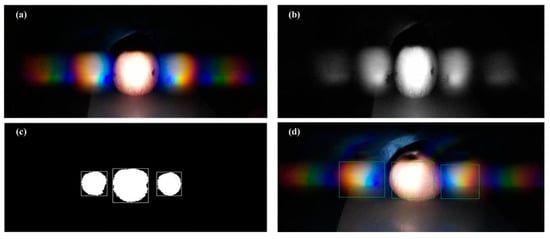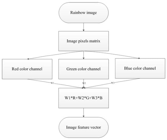 Here, we convert the obtained rainbow images to feature vectors in red, green, and blue (RGB) color space in order for representing color information. The RGB color space generally uses the superimpositions of three primary colors to form a diversity of colors. Specifically, it can be represented as a unit cube in 3-dimentional Cartesian coordinate system, where colors are linearly combined by three primary colors of different ratios []. This can be represented as: