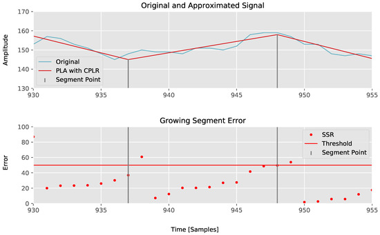 , while compressing perfect straight parts of the signal that can be approximated by a segment without any approximation error. However, the emSWAB implementation from [