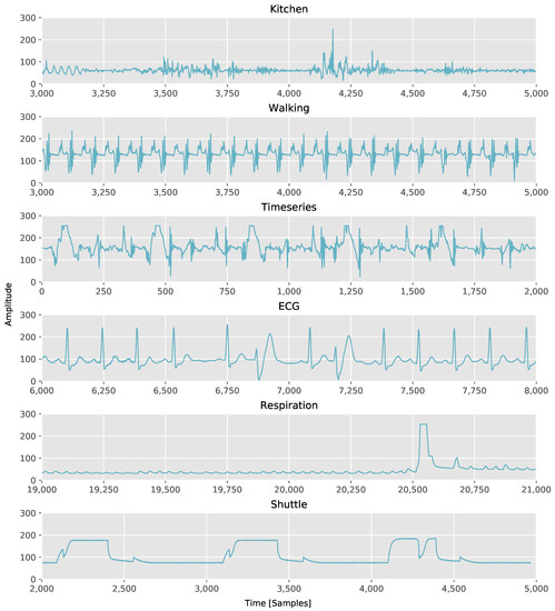 ECG signal, which contains a higher amount of non-fluctuating signal parts compared to the other data sets.