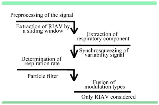 These phases may be followed by an additional option for the post-processing for example by filtering the result or by fusing the results produced by several methods. Decision on the approach essentially includes the choice of the modulated quantity, which is commonly amplitude, frequency, or baseline of a signal. Various algorithms may be formulated as combinations of different techniques in each of the phases, in which the RR information may arise from frequency or feature (morphological) domain detection. Fusion options include, but are not limited to, combining the information from different modulation sources.