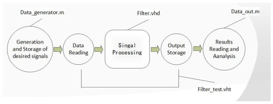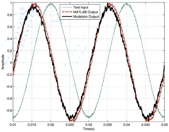FPGA is widely used in signal processing with the advantages of high speed and mass processing [,]. In the maglev system, an FPGA processor is employed in charge of signal processing tasks. Therefore, to make this TD able to function in a real maglev levitation system, a VHDL implementation has to be made to make it work in an FPGA processor. In addition, this TD’s performance can be tested in a simulation first. Usually, a VHDL program is simulated in simulation software Modelsim (Modelsim 14.1, Mentor Graphics, Wilsonville, OR, USA). However, Modelsim is not powerful enough in generating desired input signal, while MATLAB has the advantages of flexible input signal configuration and powerful input–output data process ability. In this section, the new MATLAB-Modelsim simulation is introduced in detail and the results are given. A MATLAB-Modelsim simulation process can be completed in five steps: