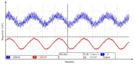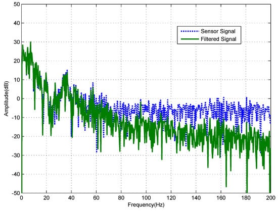 In addition, the filter’s performance for filtering in the frequency domain can be seen in Figure 19, which shows that the filter can maintain the signal’s less than 50 Hz low-frequency components while suppressing the high frequency noise disturbance effectively.