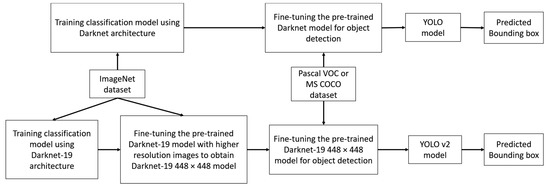 Overall flowchart of the training of YOLO and YOLO v2 for object detection