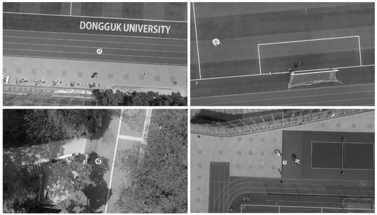 Our previous research successfully detected marker center and its direction at 10–15 m which is not convincing for a self-automated UAV system operated at a height of 30 m or more. In this study, we present an upgraded version of our self-constructed dataset (Dongguk Drone Camera Database (DDroneC-DB2)) which includes images from our previous dataset (DDroneC-DB1) [3] and new extracted images from videos captured from the DJI Phantom 4 drone at 50 m as shown in Figure 12. Compared to the DDroneC-DB1, our new dataset shown in Table 5 not only contained a larger number of images (10,642 images) but was also gathered in more challenging weather conditions (stronger wind velocity and long distance). For each sub-dataset, we captured videos at the morning (10 AM), afternoon (2 PM) and evening (6 PM). There are open databases acquired by drone cameras, such as Stanford Drone Dataset [54], Mini-drone Video Dataset [55], and SenseFly Dataset [56]; however, there are no open databases acquired while drones perform landing operations. Therefore, we acquired our own database for our experiments.