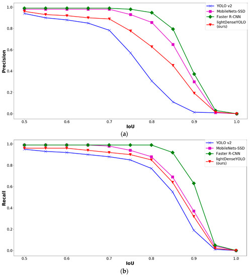 - The proposed lightDenseYOLO maintains a balance between speed and accuracy. Our approach has a similar detection performance with state-of-the-art faster region-based CNN (R-CNN) [37] and executes five times faster. All experiments were tested on both a desktop computer and the Snapdragon 835 mobile hardware development kit [19].