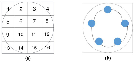 In this part, a series of data were collected from the continuous movement of the inclusion. The phantom adopted (showing in Figure 5), is a cylinder shaped transparent glass container with an inner diameter of 14 cm, and a height of 25 cm. Rectangular shaped stainless-steel sheets (4 cm × 3 cm) were used as electrodes. Screws were utilized for the purpose of connection and fixing on the phantom properly. An extra screw was installed on the wall above the electrode ring to connect with the ground wire with the data collection system. To be consistent with the simulation, the model is kept to be the same size and same way of circular movement. In the 2D experiment, a plastic bar was used as an inclusion and it was moving continuously along the inner wall of the phantom anticlockwise with R = 5 cm until it came back to the origin. There were 70 frames collected from the ERT KHU Mark 2.5 data collection system (Kyung Hee University, South Korea) with an injected current of 100 µA and 11.25 KHz, where neighboring excitation and measurement method were used and 208 individual voltages in total were collected for each frame. The current injection pattern and voltage measurement pattern are summarized in the Table 1. In this case, 70 corresponding images are produced. As mentioned in the 2D simulation, Temporal TV algorithm was used for reconstructing images for proposes of movement monitoring, and angular speed calculation was conducted by cross correlation.