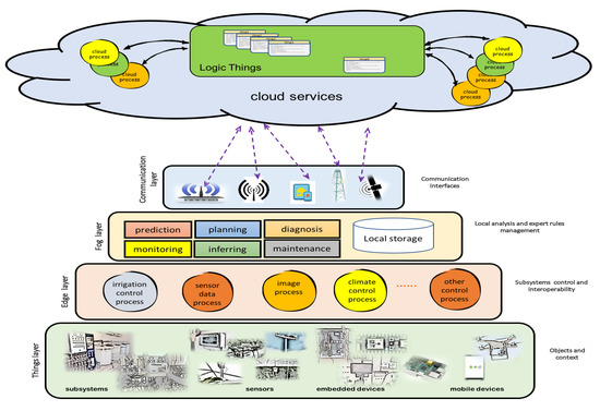 Precision Agriculture Design Method Using a Distributed Computing Architecture on Internet of Things Context †