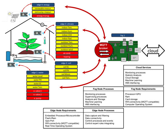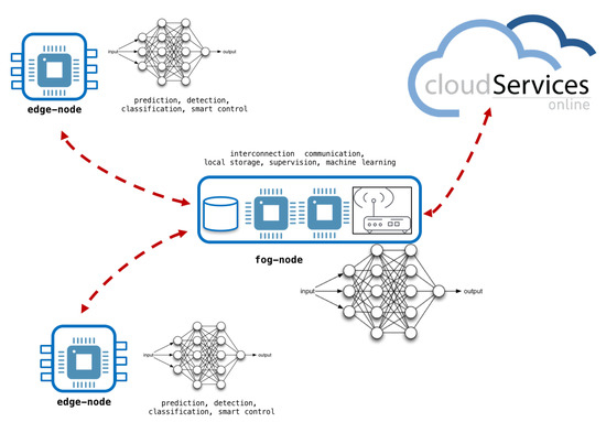 - Data treatment on edge computing devices: In this phase, data analysis and automatic services develop new capabilities that are implemented on the new edge nodes. Applications of this phase can be data filtering, predictive calculation of climatic data, classification services or detection events