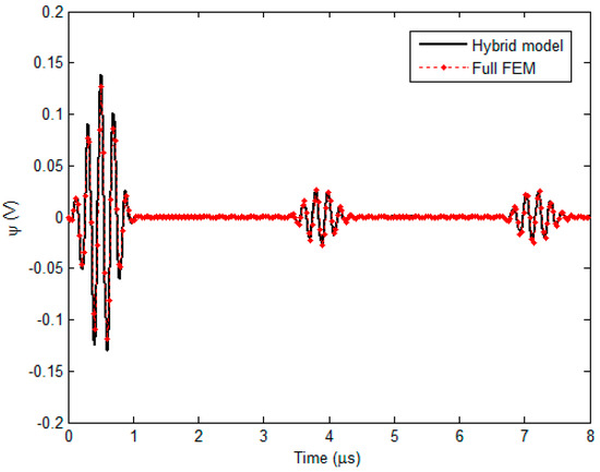 Comparison of the predicted EMAT signal between the hybrid model and full FEM.