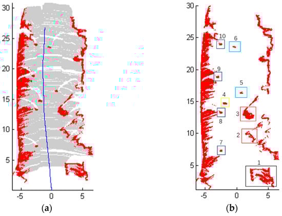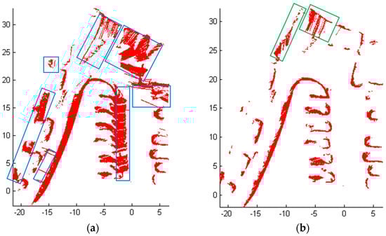 Obstacle extraction by Blas’ method. (a) The results of Scene 1; (b) The results of Scene 3.