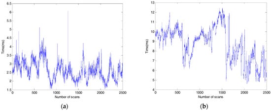 The computing time of our method and Blas’s method. (a) Our method; (b) Blas’ method.