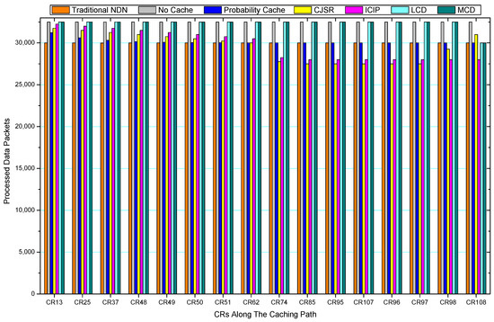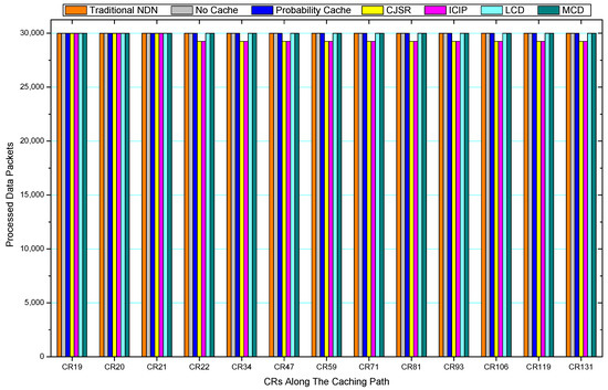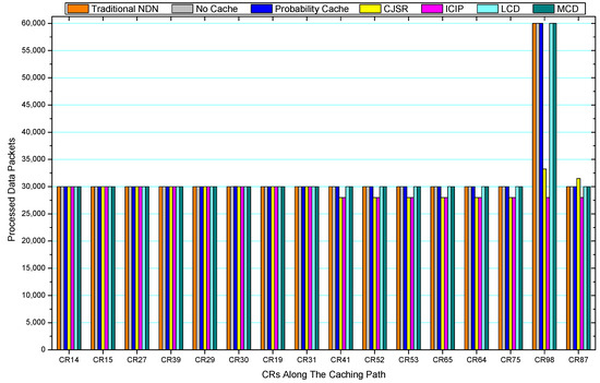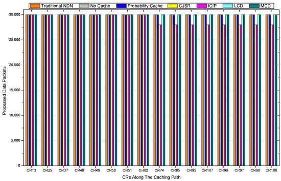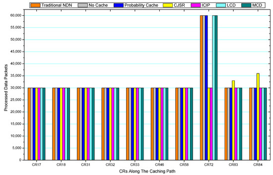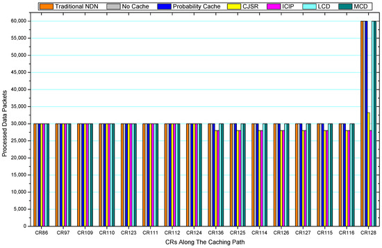 The number of processed data packets of each CR along Caching Path 6 in Scenario 6.