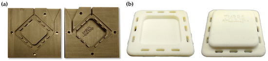 (a) Mold for the silicone rubber housing casting; (b) Cast silicone rubber electrode housing.