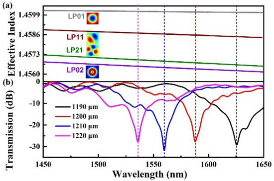 Figure 3a. Additionally, the LPFG phase-matching condition could be calculated using the following formula: