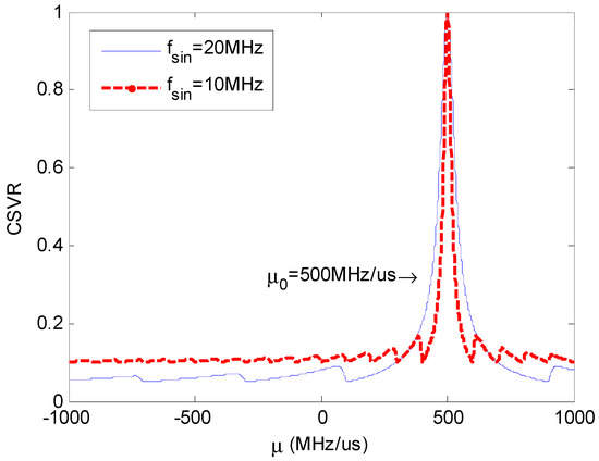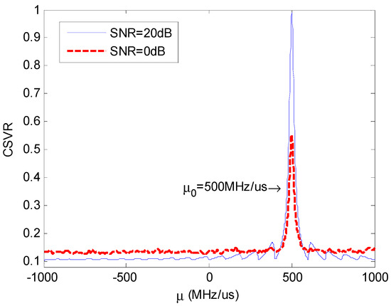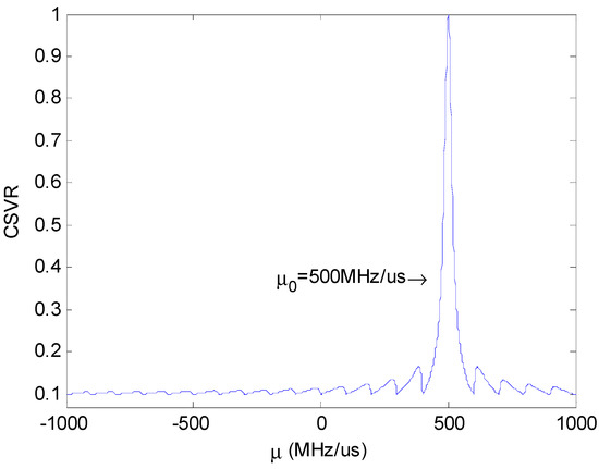 Meanwhile, we can search the peak of CSVR spectrum in Equation (7) whose argument is the chirp rate and the estimated chirp rate is: