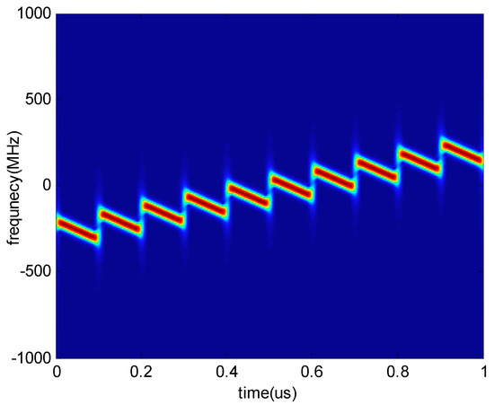 Thus, we can dechirp the signal in Equation (3) by multiplying an auxiliary LFM signal , where μ is an argument. The result can be reshape to a matrix.