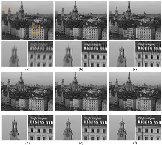 - Krishnan, D.; Tay, T.; Fergus, R. Blind deconvolution using a normalized sparsity measure. In Proceedings of the IEEE Conference on Computer Vision and Pattern Recognition, Providence, RI, USA, 20–25 June 2011; pp. 233–240. [Google Scholar]