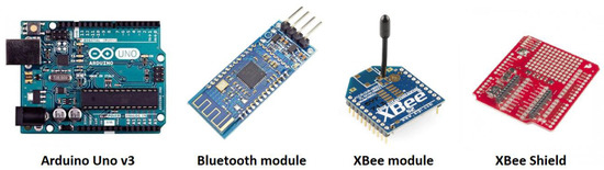 According to the ZigBee network specifications, one of the modules was set as Coordinator and the other one as End-Device. An XBee Shield was used as an interface between the module and the Arduino board (Figure 1).