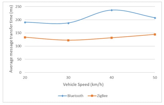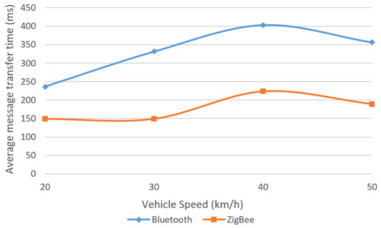In conclusion, Bluetooth will allow for exchange of messages but only for low moving speeds or for vehicles that will spend short periods of time near the infrastructure equipment. ZigBee, on the other hand, will achieve successful communication at higher moving speeds, smaller messages being recommended and for non-critical applications.