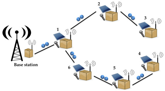 From the point of view of power consumption, base station nodes can be considered as being located next to a communication cabinet, where the connection to the infrastructure network is implemented. In this cabinet, there used to be an external supply of electricity. According to this assumption, no autonomous electricity generation is needed for consideration in the design of base station nodes.