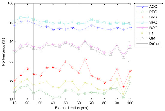 - MFCC with optimum frame duration (, that is, extracted with the same options used in the previous stage but using the optimum frame duration.