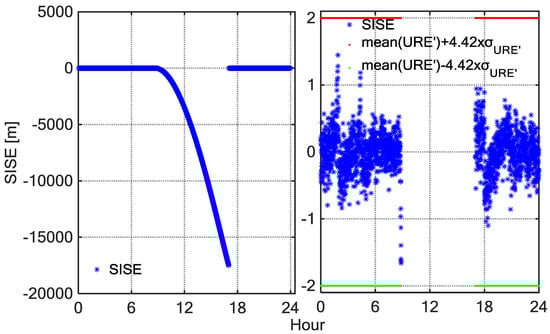 Figure 11 shows the SIS UREs time series of C02 observed by a MGEX station, NNOR on DOY 346, 2015. The left panel shows the SIS URE time series of C02 whole day tracked by NNOR, and the right panel shows the SIS URE of C02 by NNOR with the anomalous periods removed. The first anomaly experienced by NNOR started at 11:00 and ended at 12:00. The UREs suddenly increased and exceeded the confidence interval during this period. The anomaly may have resulted from the unplanned operations. Therefore, broadcast ephemeris cannot alarm on time. When anomalies were detected, the operation control centre immediately adjusted the health status of the satellite, but the TTA (Time to Alarm) of the broadcast ephemeris was too long, which may impact some applications requiring the safety. The BDSGSISM can make up for this shortcoming.