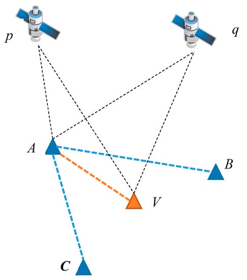 Then, the inter-station difference observations between the station A and station V only contain the geometry difference and the propagation-specified error sources, which can be expressed as [,]:
